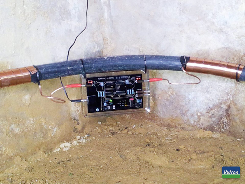 Vulcan is an eco-friendly water treatment system that protects your piping system and appliances against scale deposits and rust. The Vulcan-Impulse-Technology is based on the principle of physical water treatment. Special electronic impulses change the crystallization process of the liquid calcium. This way the hard scale loses its adhesive power. The technology works exclusively with capacitive electric impulses: